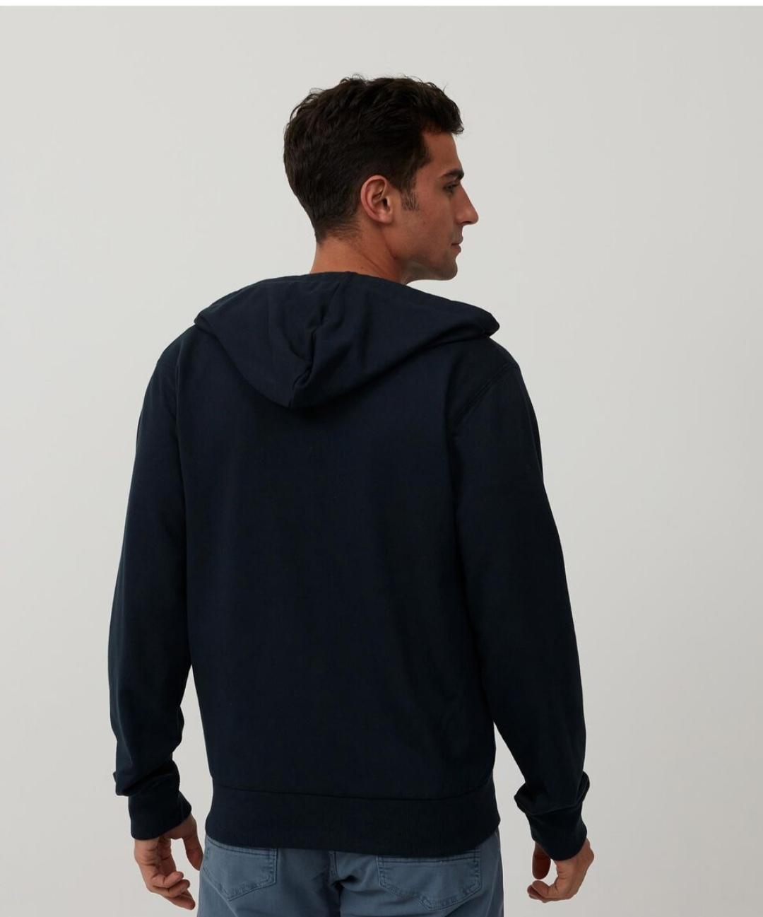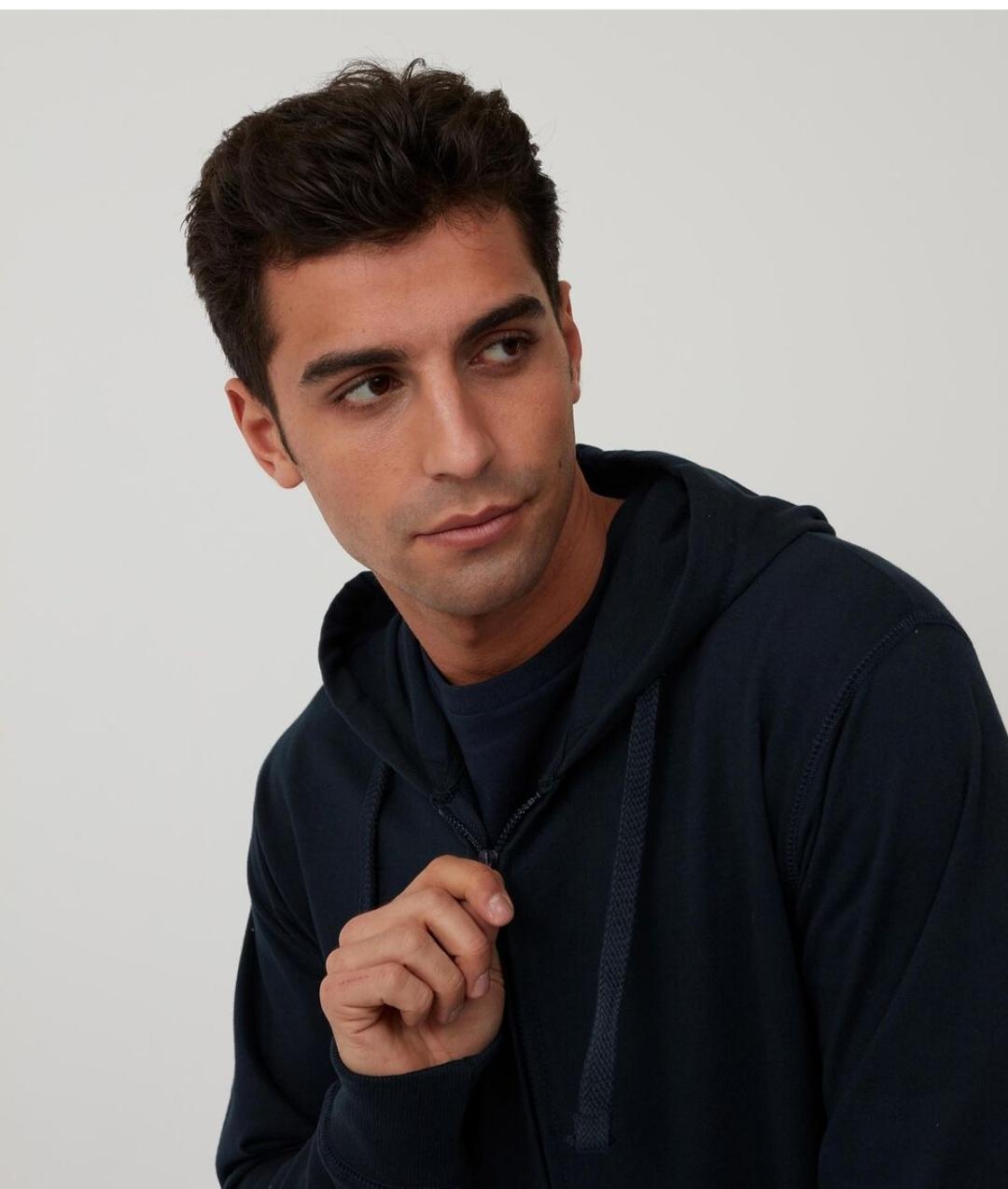 Chaqueta básica de punto de algodón con capucha y cordón ajustable. Bolsillos laterales. Puños y bajo de canalé. Práctica y cómoda, es esencial en el armario durante todo el año.