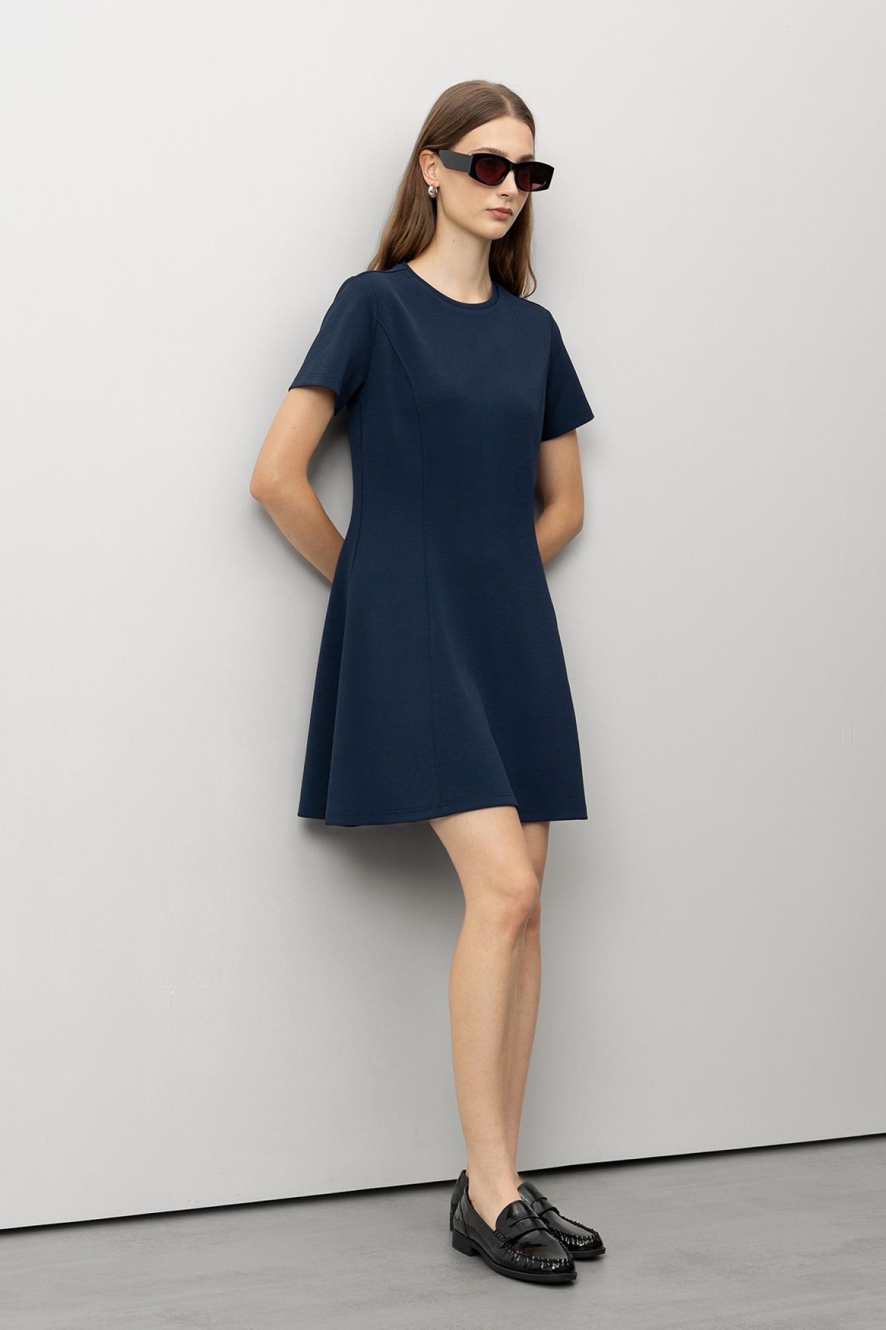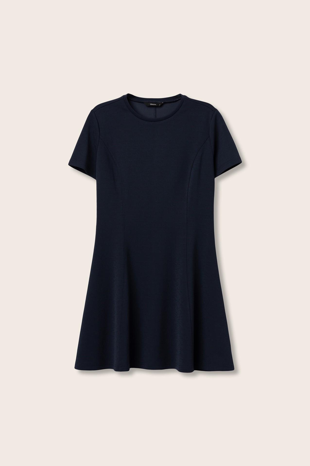 Vestido corto regular fit de punto, con cuello redondo, manga corta y falda evasé.