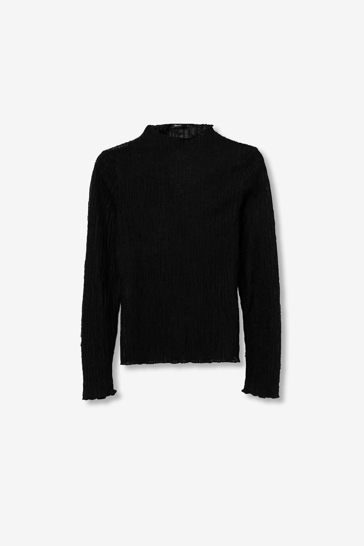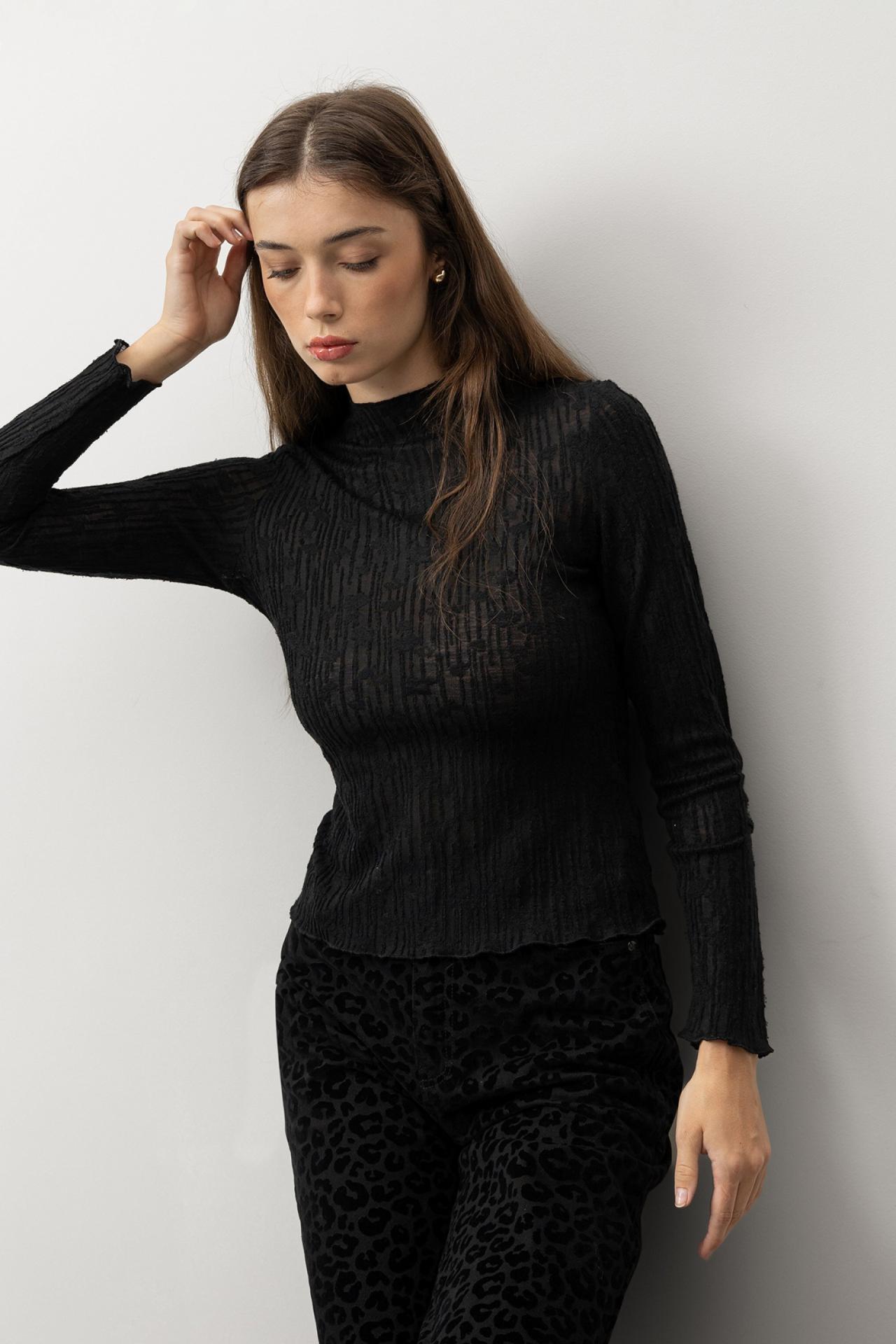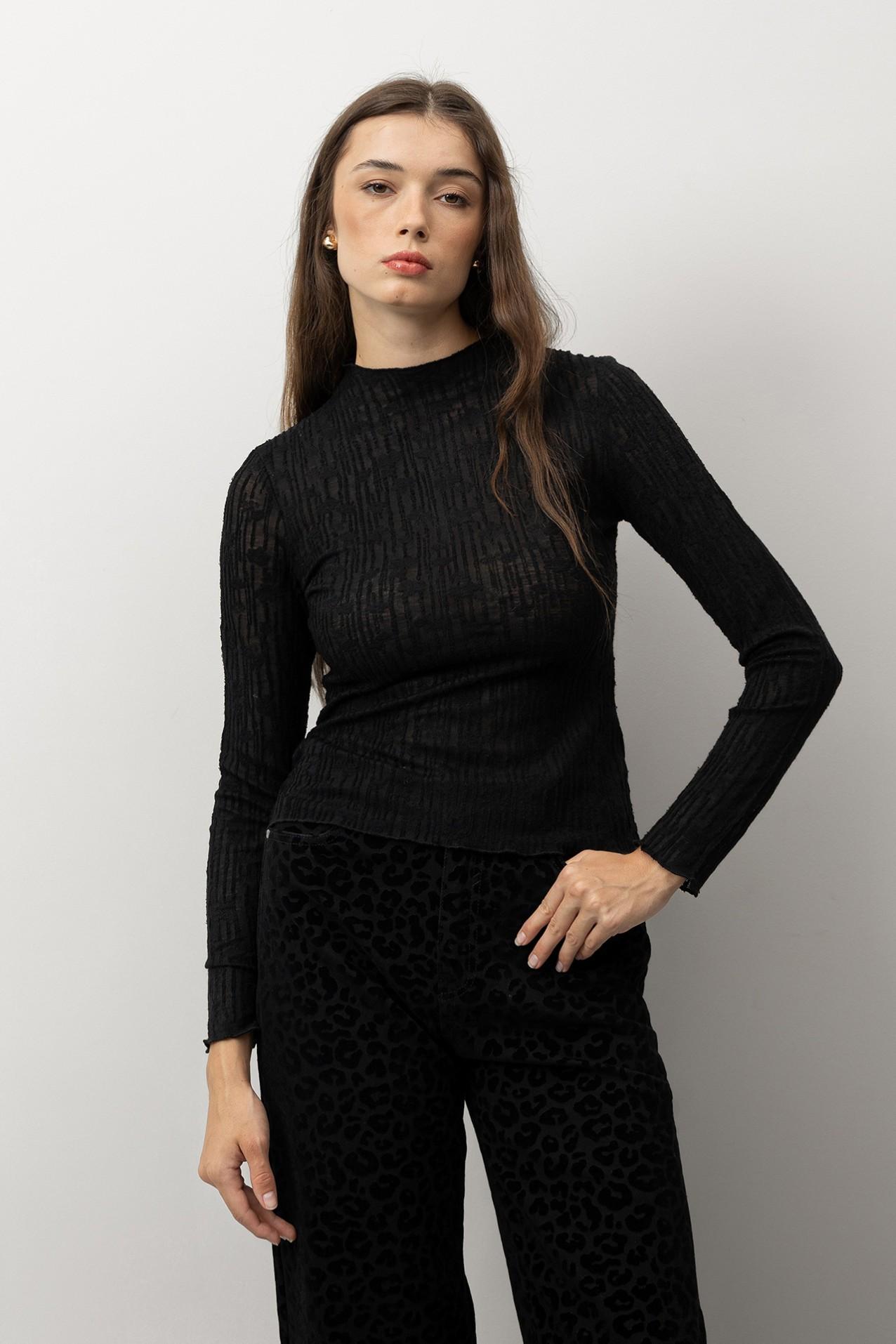 Camiseta regular fit de punto fino texturizado, con escote redondo y manga larga.