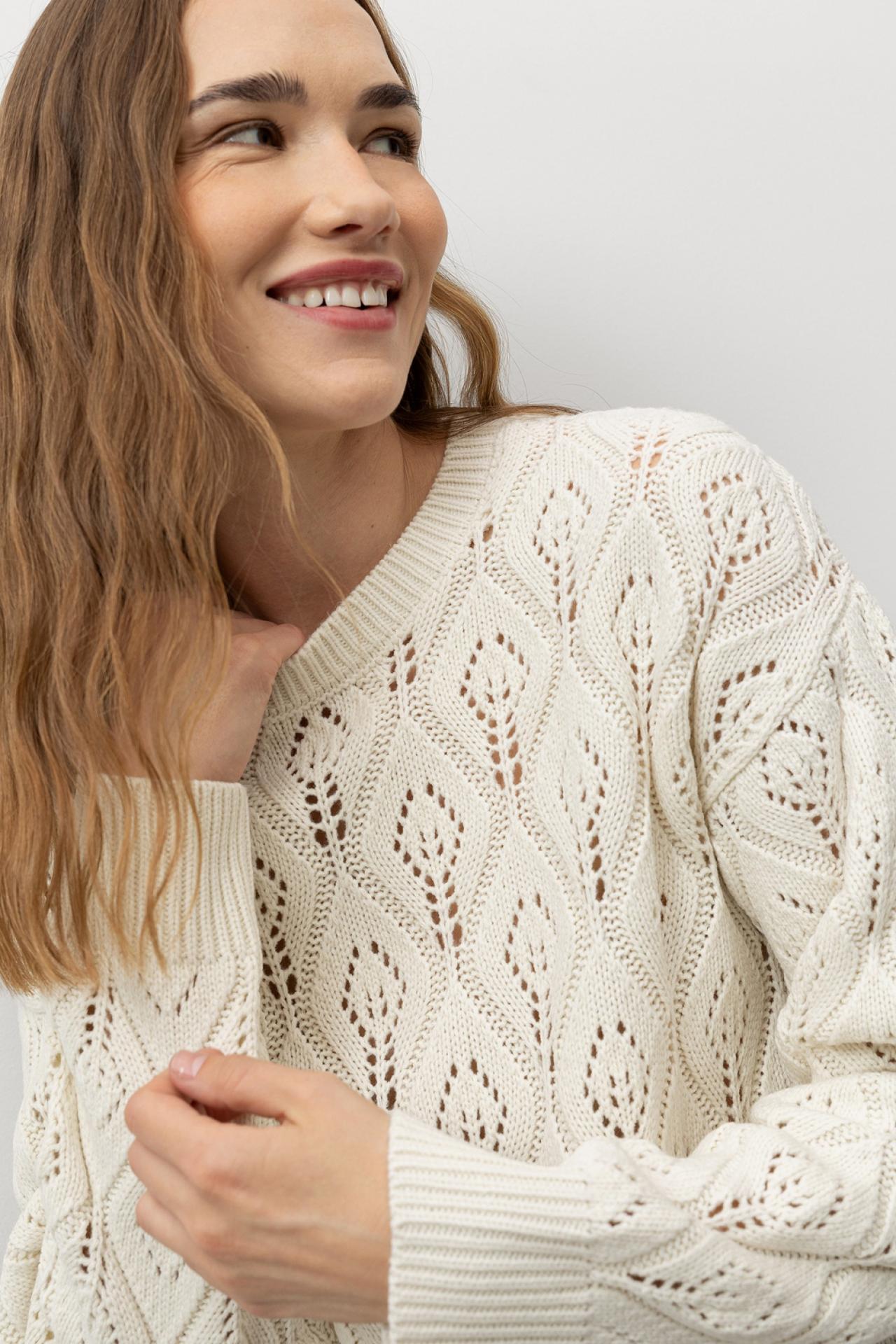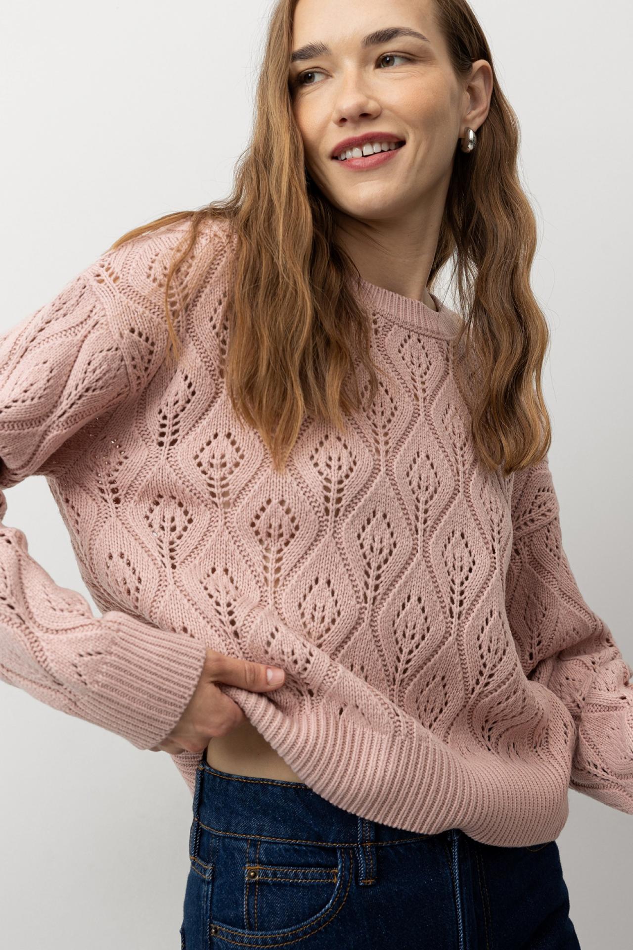 Jersey relaxed fit de punto con punto hoja. Escote redondo, manga larga y acabados canalé.
