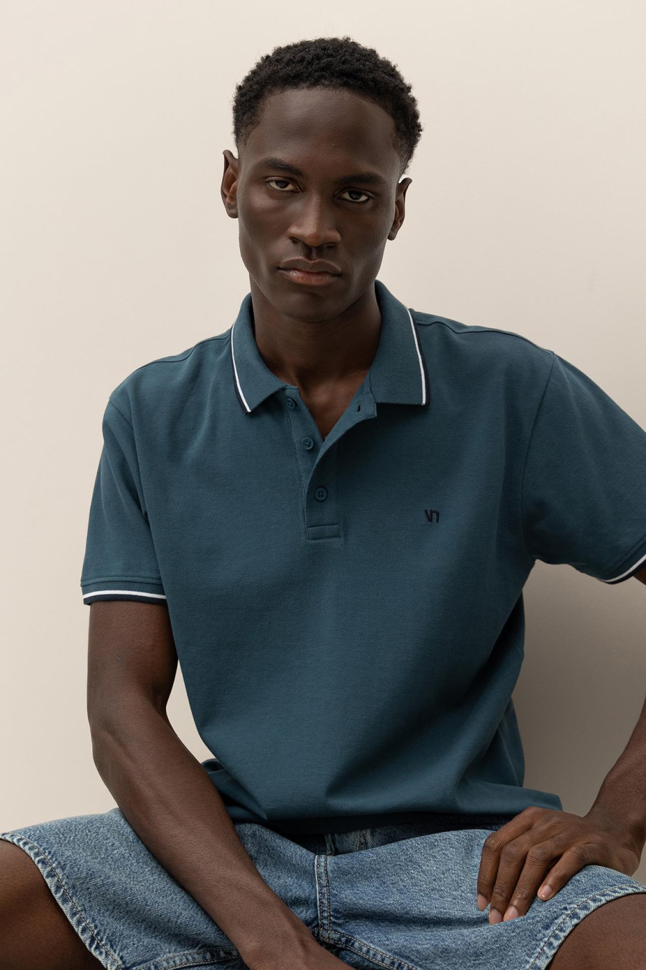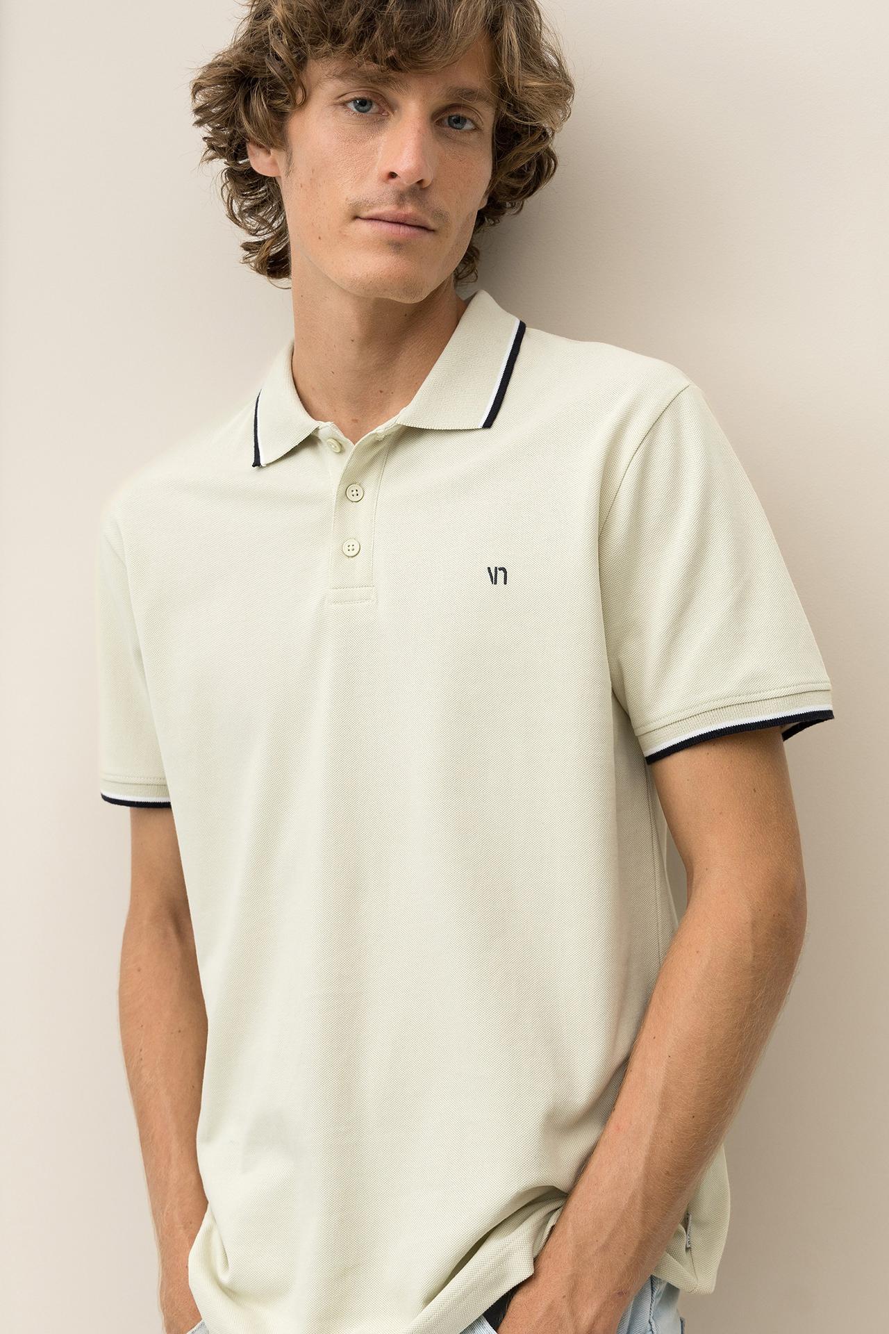 Polo de ajuste regular, 100% algodón, con bordado frontal y acabados en contraste de color. Cuello, abertura frontal con botón, manga corta y dobladillo con aberturas laterales.