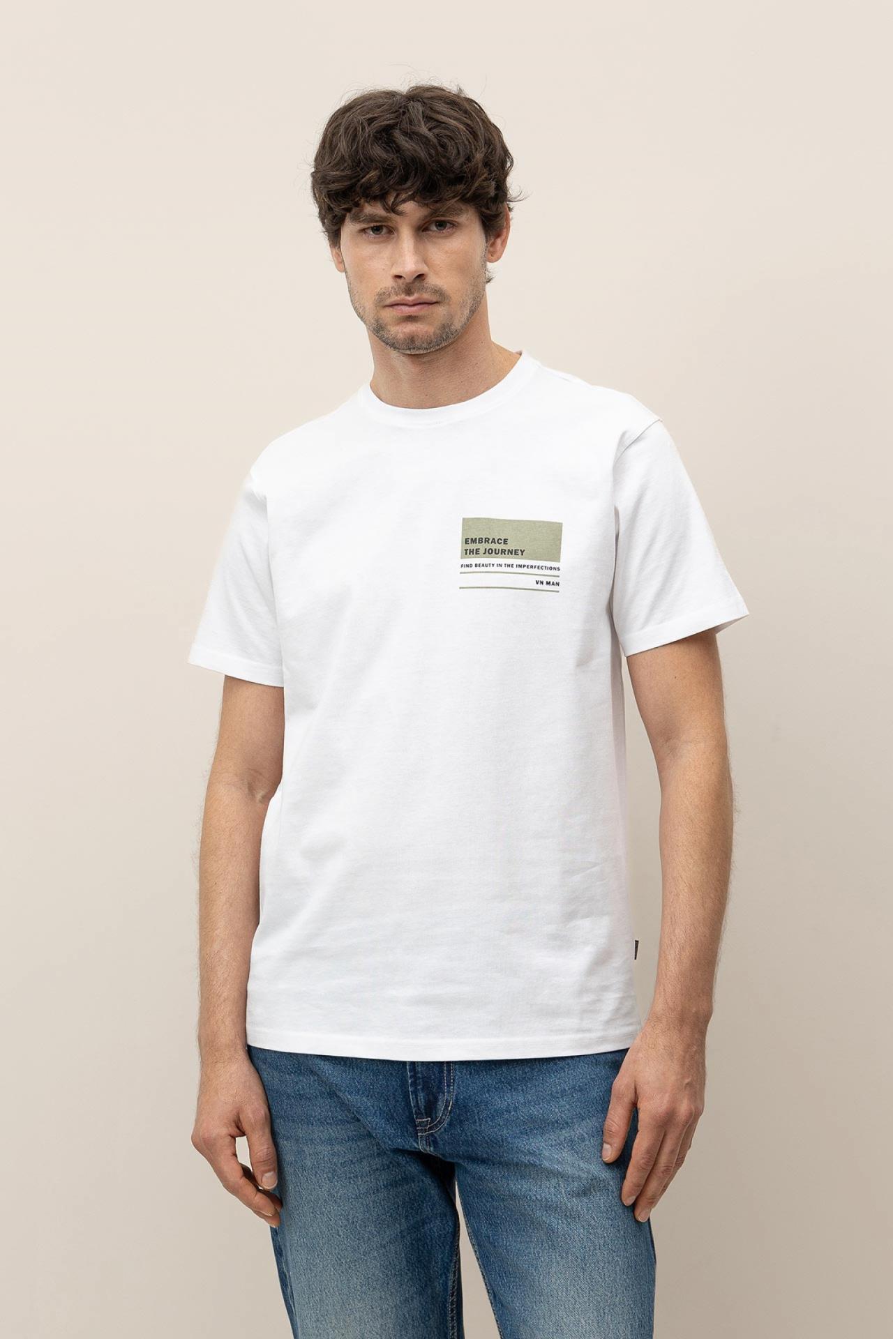 Camiseta de corte regular, 100% algodón, com estampado en la parte frontal. Cuello redondo y manga corta.