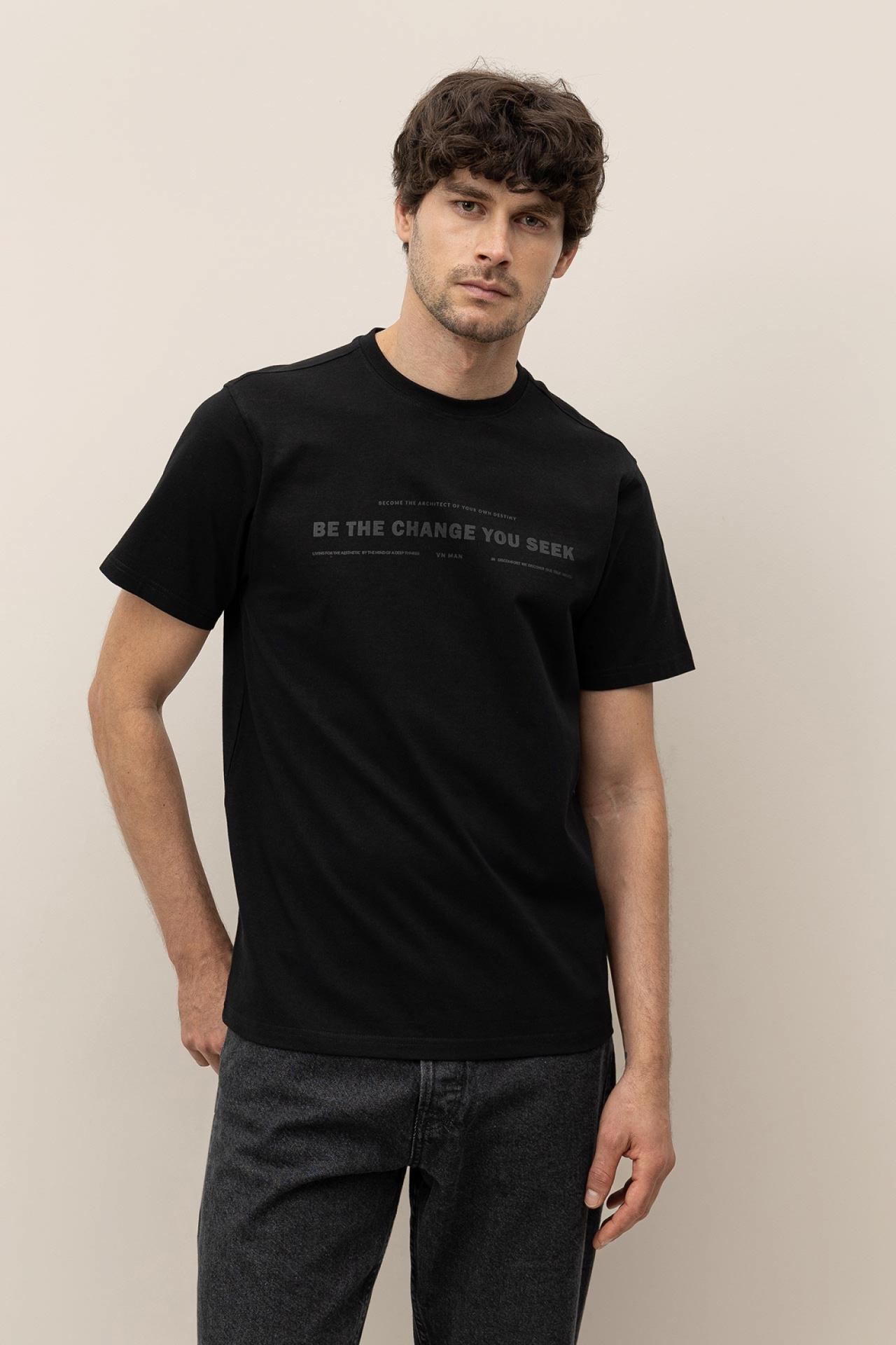 Camiseta de corte regular, 100% algodón, com estampado en la parte frontal. Cuello redondo y manga corta.