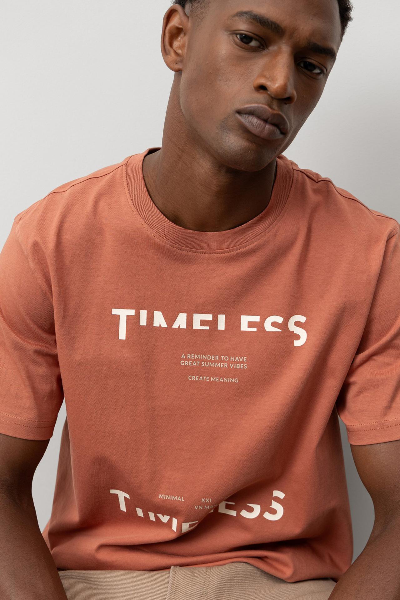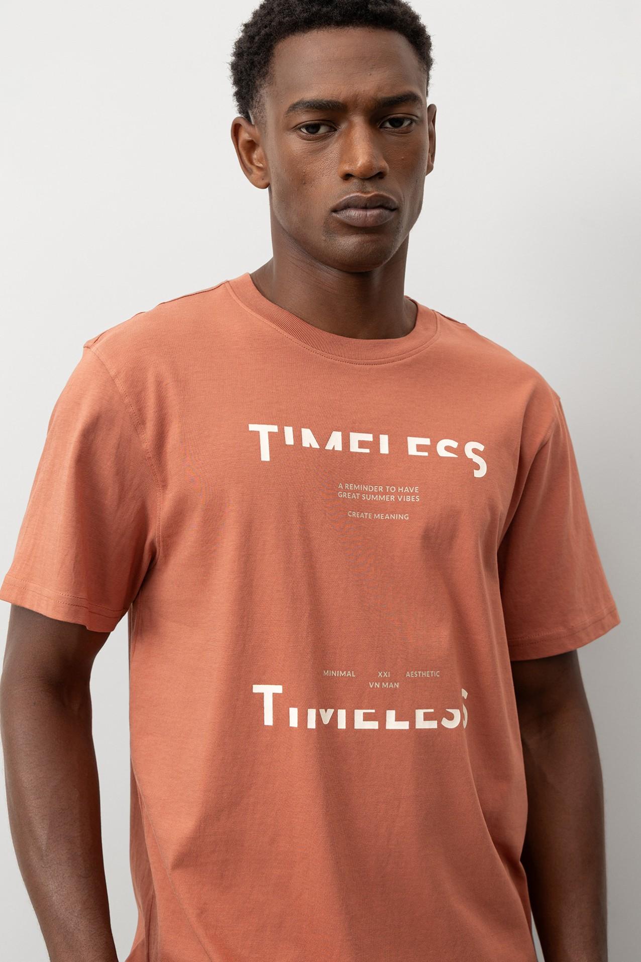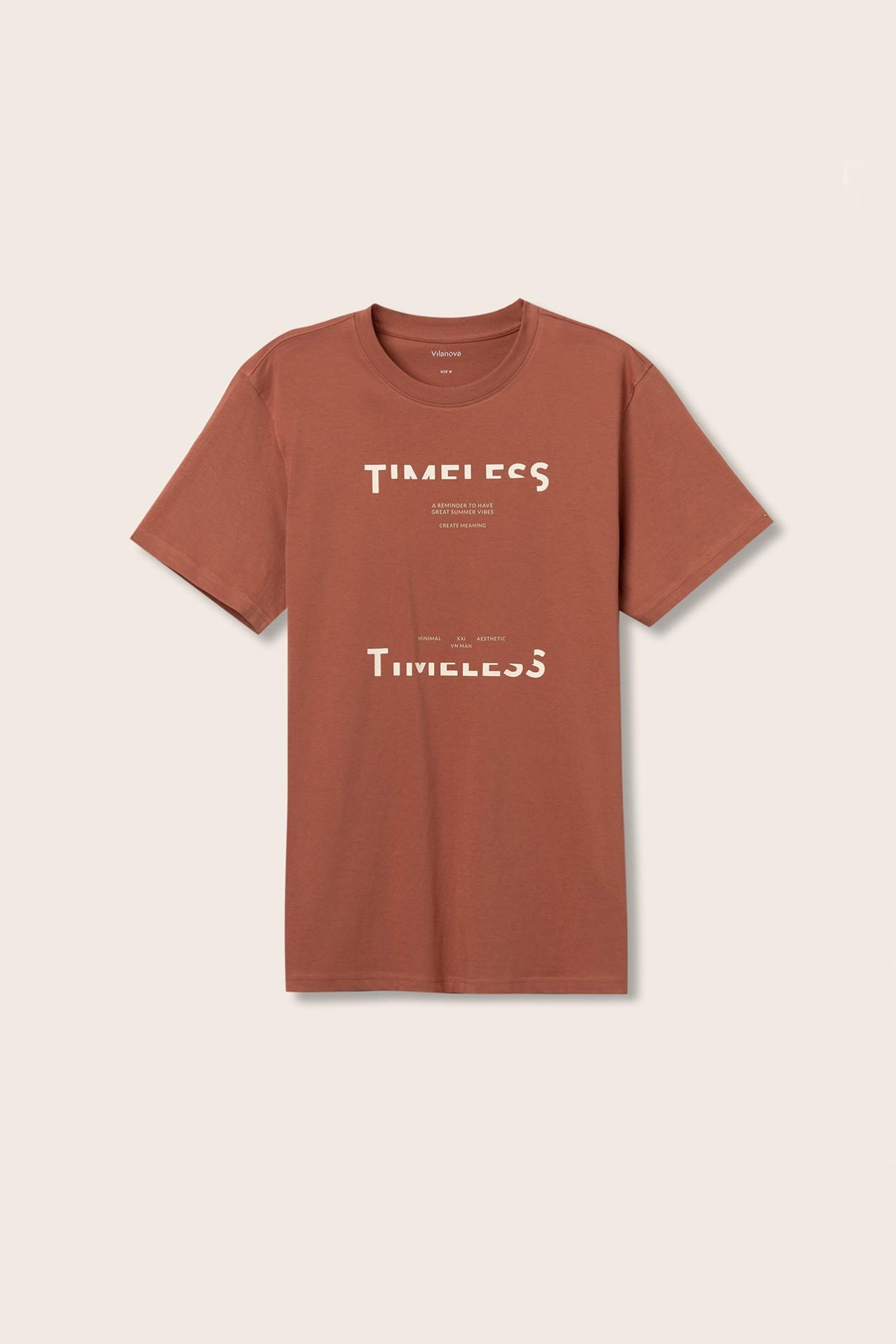 Camiseta regular fit 100% algodón, con estampado de mensaje frontal. Escote redondo y manga corta.