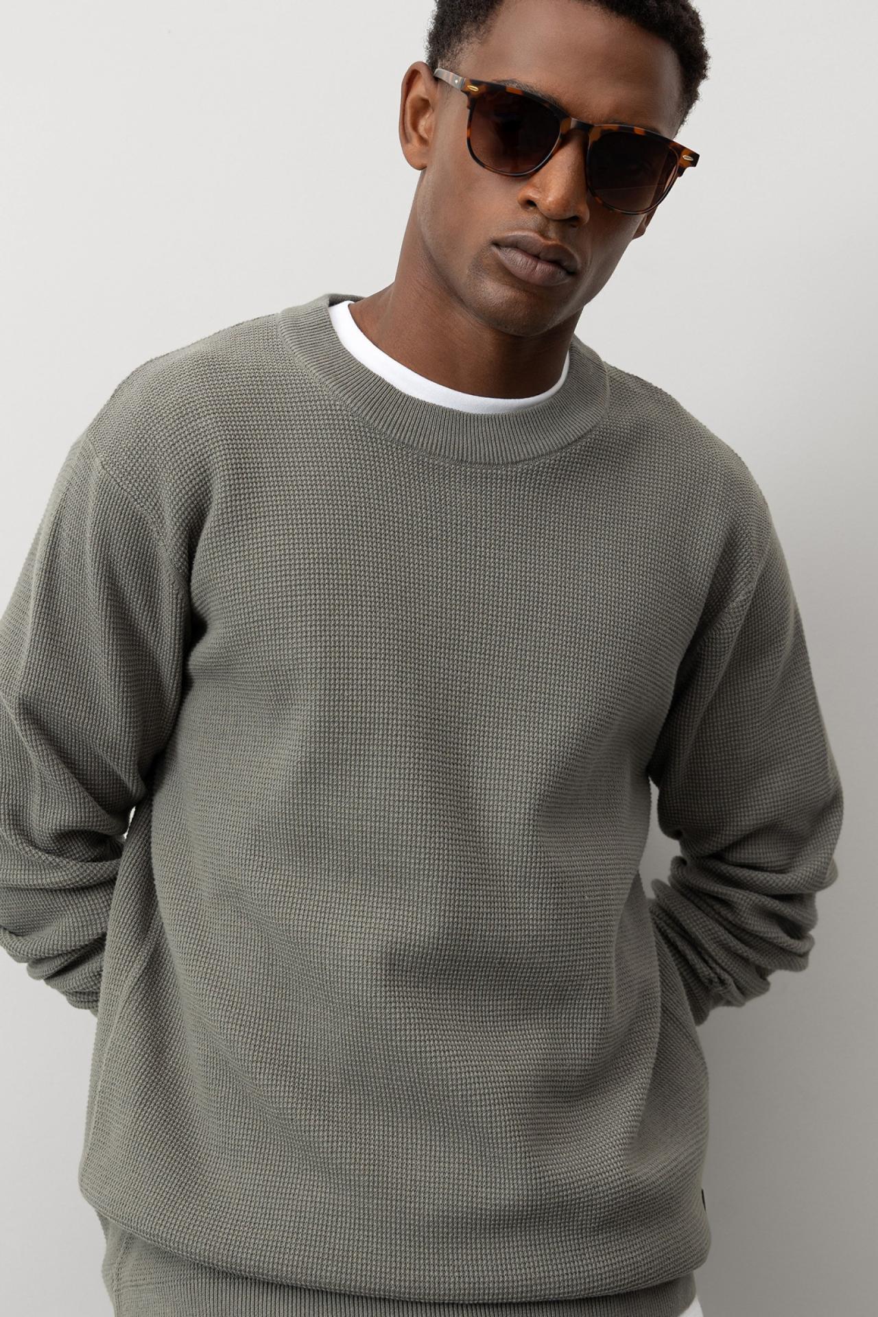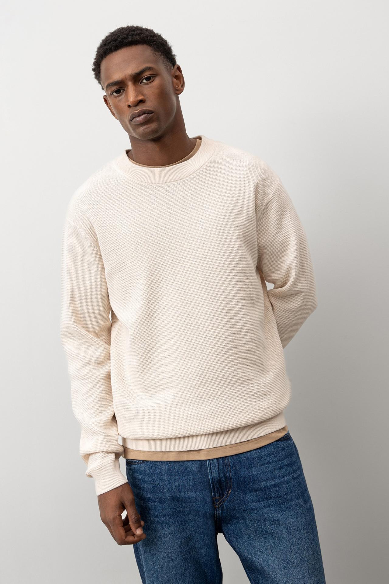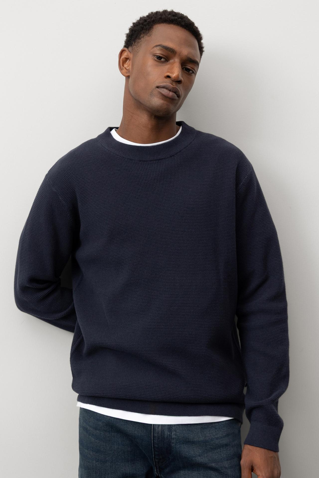 Jersey corte regular de punto piqué, 100 % algodón. Cuello redondo y manga larga.