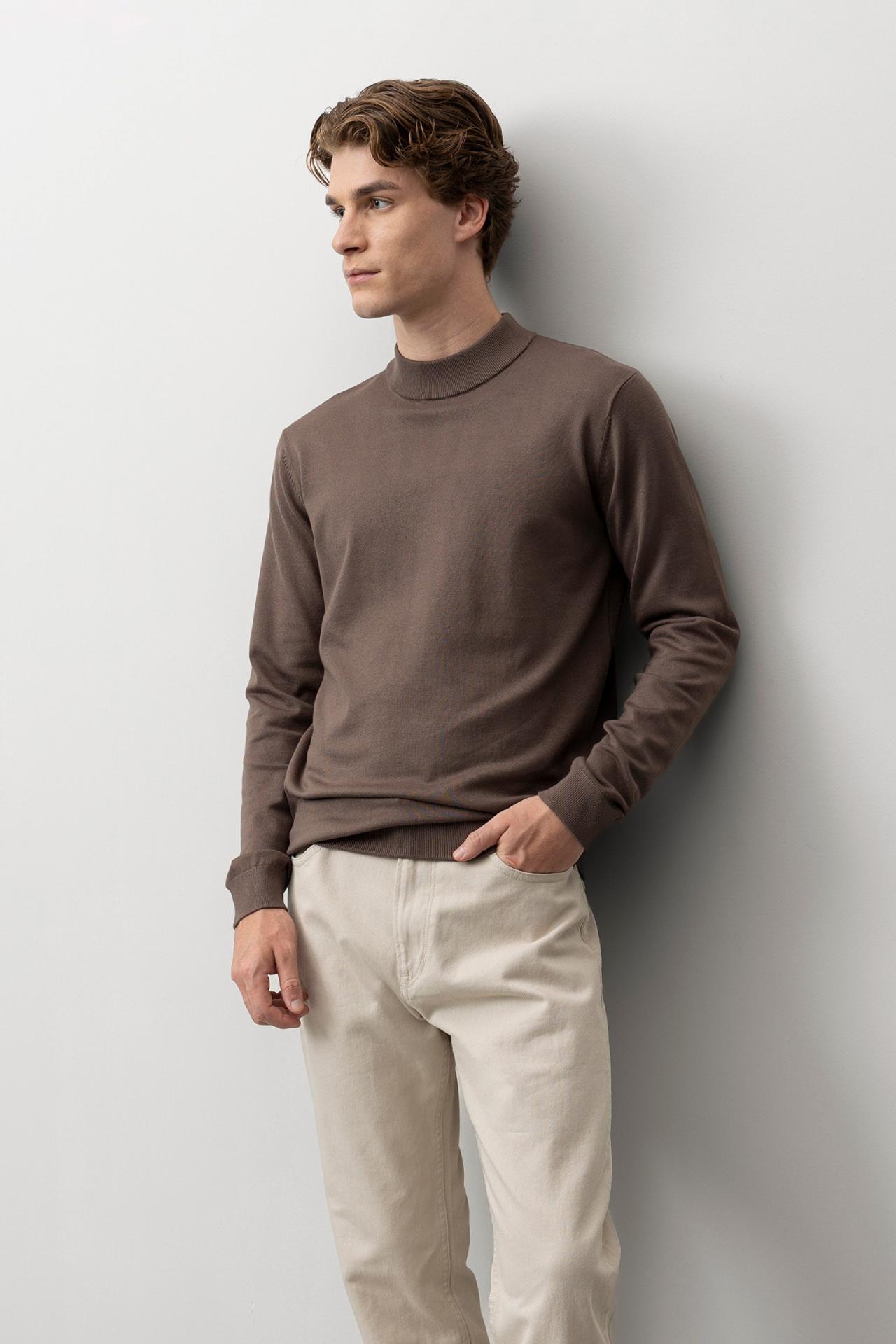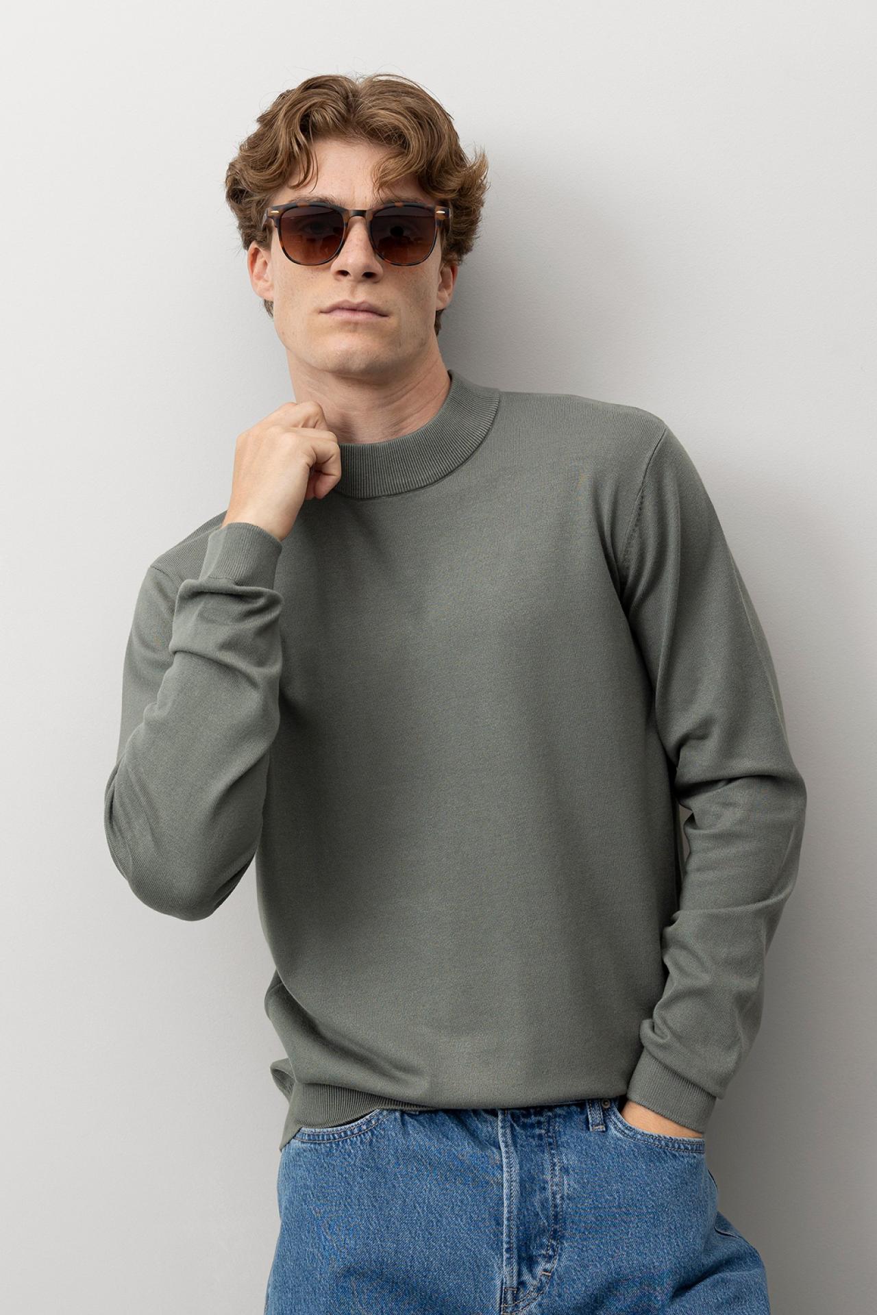 Camiseta masculina en verde suave, corte regular, cuello redondo y puños ajustado