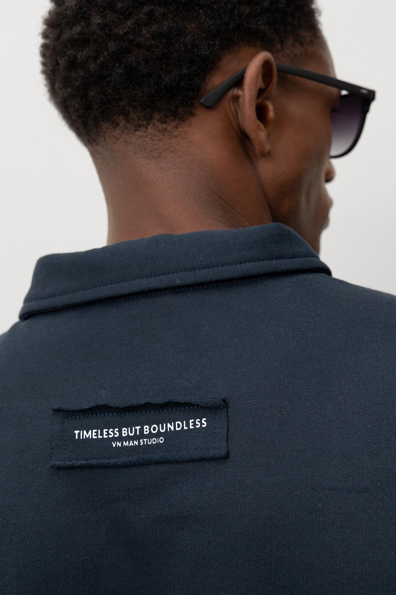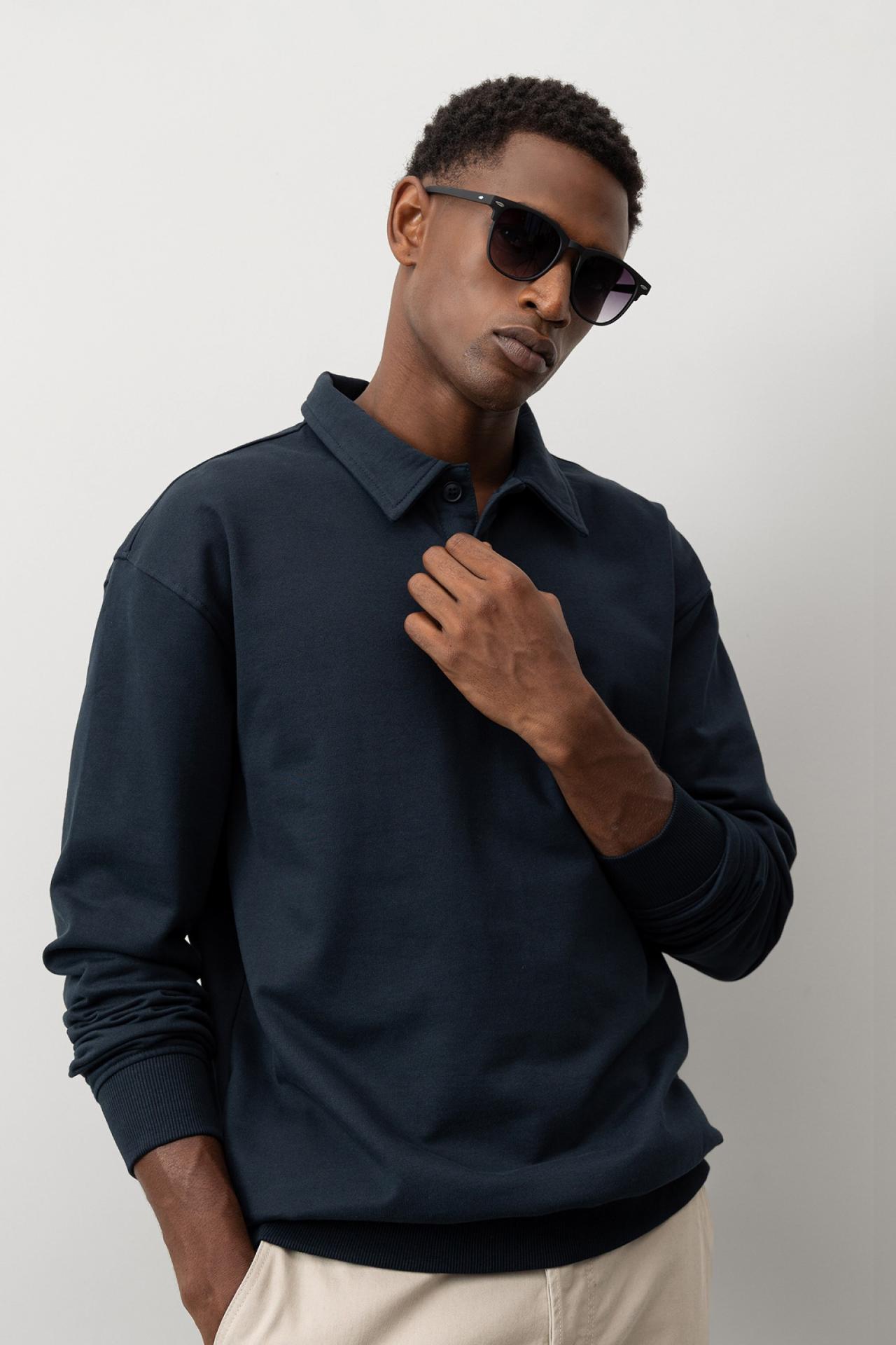 Sudadera relaxed fit con parche bordado en la espalda, cuello polo y manga larga.